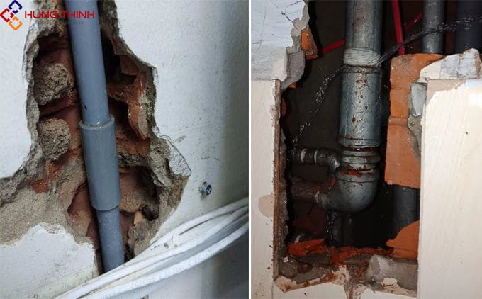 - Tác động mạnh từ bên ngoài: Va đập mạnh từ việc đóng đinh hoặc khoan tường có thể làm hỏng ống nước âm tường. Lập kế hoạch và kiểm tra kỹ lưỡng trước khi thực hiện các hoạt động này.