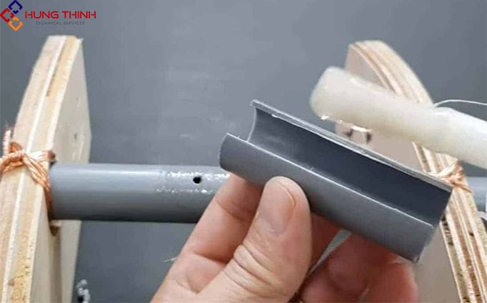 - Sử dụng loại ống to hơn 1 cỡ hoặc có kích thước tương đương. Tiến hành xẻ dọc và lấy 2/3 phần ống, sau đó làm sạch bề mặt ống trong tường.