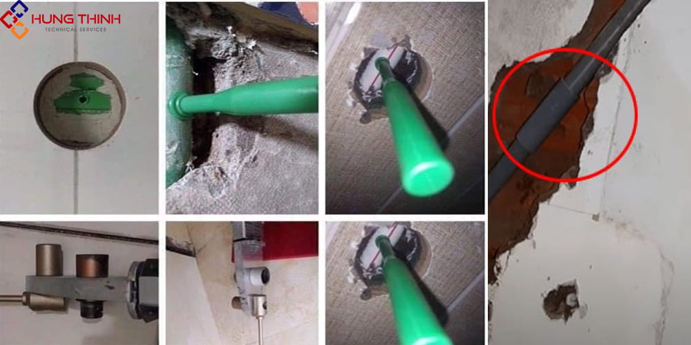 - Kỹ thuật xác định vị trí: Sử dụng các công cụ chẩn đoán hiện đại như máy dò âm thanh hoặc camera nội soi để xác định chính xác vị trí rò rỉ giúp hạn chế tối đa việc đục phá không cần thiết, đồng thời bảo vệ cấu trúc của ngôi nhà.