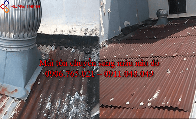 Mái tôn chuyển sang màu nâu đỏ: