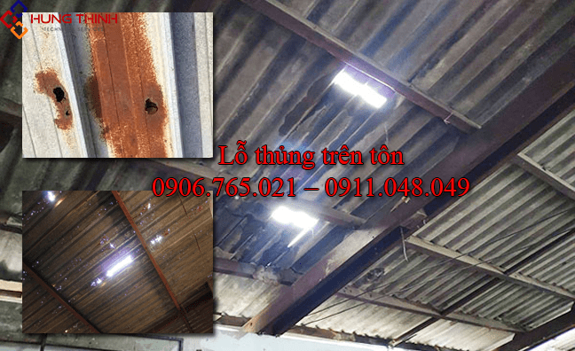 - Vị trí sửa chữa cần được xác định và thực hiện công việc vá lỗ thủng bằng cách gắn thêm một miếng tôn mới phải phù hợp với mức độ ăn mòn và tình trạng hiện tại của mái tôn.