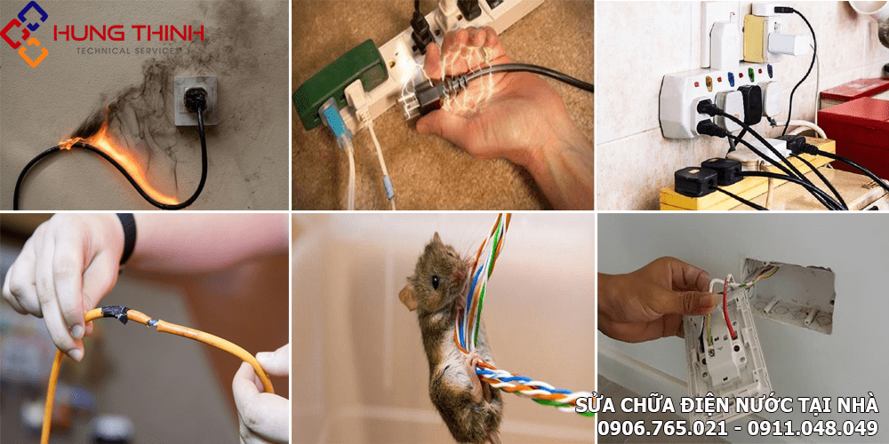 + Sửa chữa thay thế đường dây điện: Hư hỏng, hở mối nối, đường dây điện quá cũ, bong tróc lớp vỏ bảo vệ…