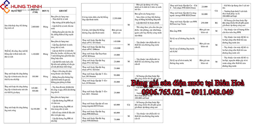 Lưu ý chi tiết về báo giá sửa điện nước tại nhà Biên Hoà của Điện Nước Hưng Thịnh: