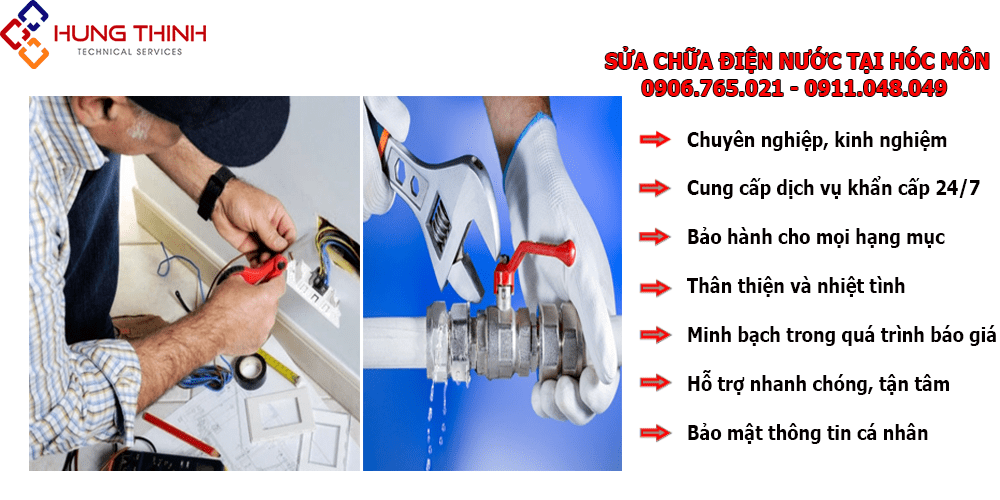 Nhu cầu về dịch vụ sửa chữa điện nước đang ngày một tăng cao đi liền với sự phát triển của xã hội. Hưng Thịnh là một trong những đơn vị sửa điện nước tại Hóc Môn luôn có mặt nhanh chóng, làm việc trách nhiệm, giá cả hợp lý, dịch vụ đa dạng và chất lượng cao.